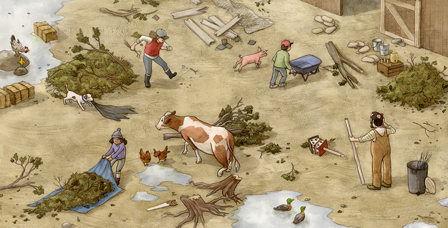 A community of animals and humans work together to rebuild their farm after a storm causes damage in this companion picture book to Together We Grow by award-winning author Susan Vaught and acclaimed illustrator Kelly Murphy.